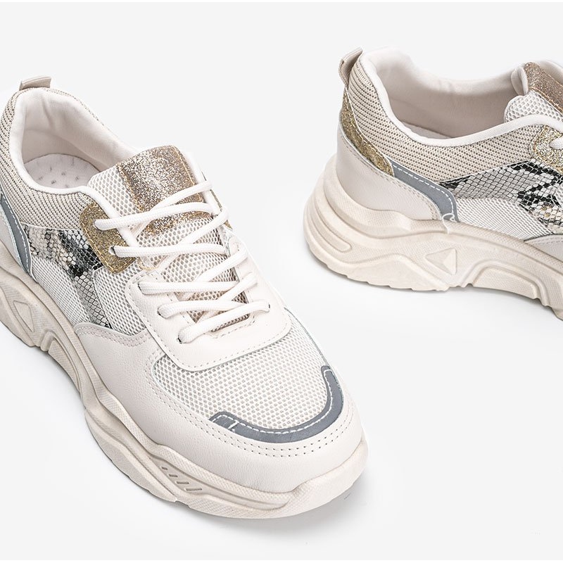 Inna marka Baskets beiges à semelle épaisse à motif peau de serpent Anika