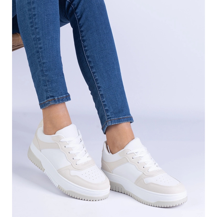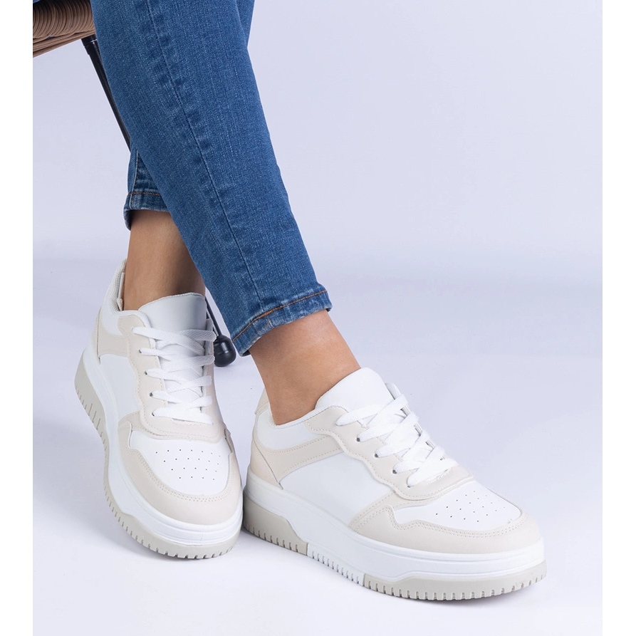 Le haut en cuir écologique ajoute non seulement de l'élégance, mais rend également les chaussures respectueuses de l'environnement. La couleur beige des baskets les rend extrêmement polyvalentes - ils se mélangent parfaitement avec des stylisations décontractées et plus élégantes. Quelle que soit l'opportunité, ces baskets donneront à vos tenues un personnage moderne.