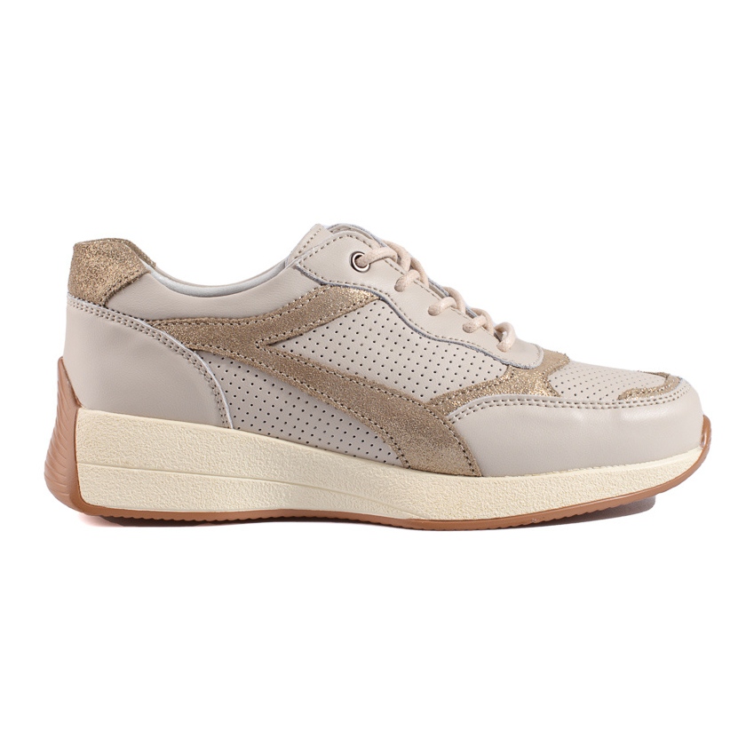Détails: Baskets beiges en cuir sur la plateforme Shelovet