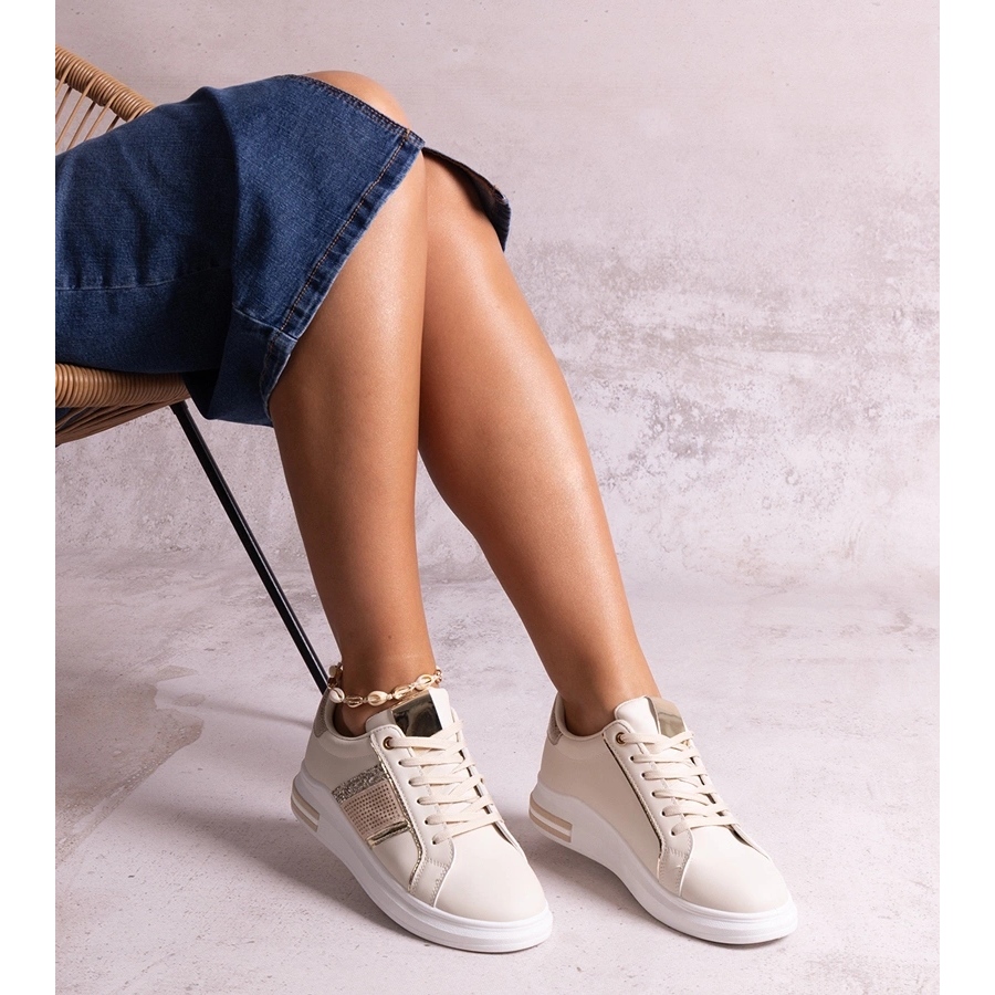 - Modèle: Baskets beiges ornées de strass