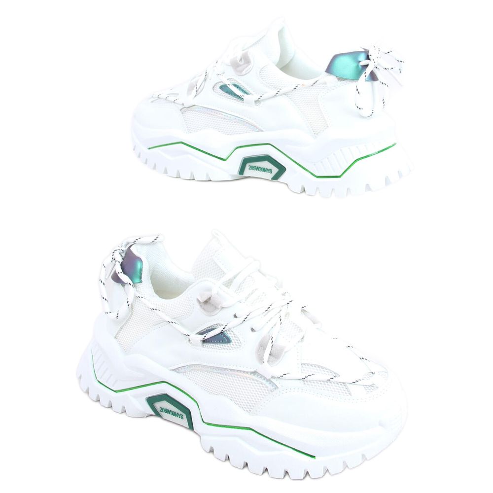 Découvrez le véritable pouvoir du style avec les chaussures de sport Berta White ! Ces baskets pour femme originales dans une combinaison tendance de blanc et de vert sont un incontournable cette saison. La semelle massive et blanche garantit non seulement le confort, mais aussi une adaptation parfaite à différents styles. Les accessoires holographiques et métalliques attirent l'attention et permettent à chaque femme de se sentir unique et confiante.