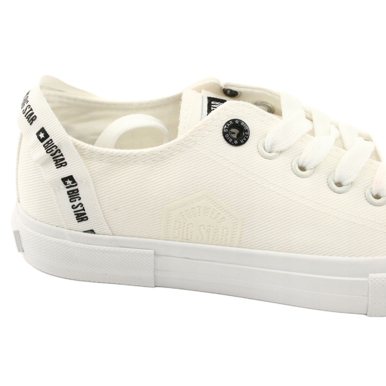 Sneakers classiques et universels Big Star en blanc pur - parfait tous les jours. Le coton supérieur et intérieur en coton aéré offre un confort tout au long de la journée, et la semelle en caoutchouc et en caoutchouc durable garantit une bonne adhérence. Le modèle FF274206 combine une coupe simple et intemporelle avec une marque subtile - le logo et une insertion caractéristique sur le côté leur donnent un style sans perturber l'esthétique minimaliste.