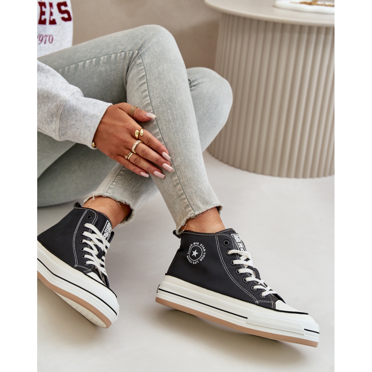 Les baskets en cuir noir Big Star sont une proposition idéale pour les femmes qui apprécient le confort combinées à un design à la mode. En cuir biologique de haute qualité, ces baskets noires ont non seulement l'air bien, mais assurent également le confort toute la journée. Leur couleur classique les rend facilement combinés avec différents styles - de décontracté à plus élégant.