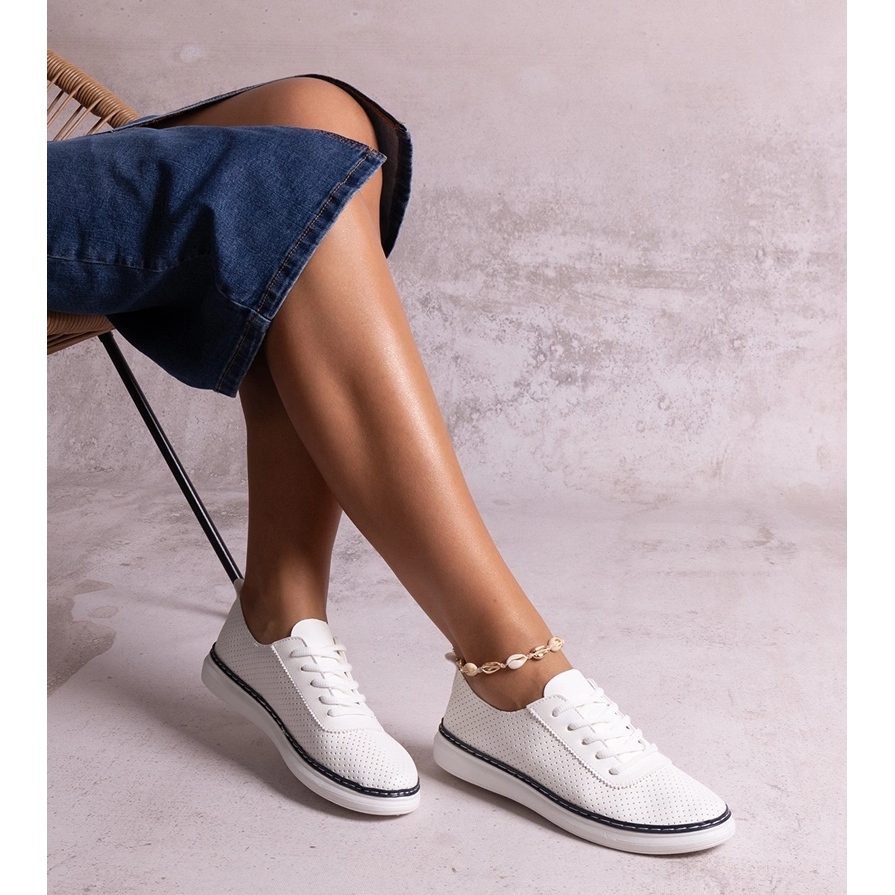 Détails: Baskets Biserka ajourées blanches et bleu marine