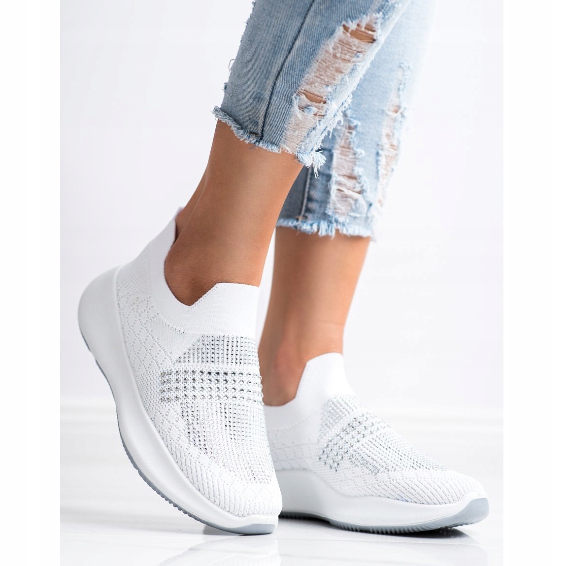 Découvrez d'extraordinaires baskets blanches avec cristaux de la marque Renda, qui allient style sportif classique et accents élégants. Ces chaussures à enfiler sont le choix parfait pour les femmes qui apprécient la mode et le confort au quotidien.