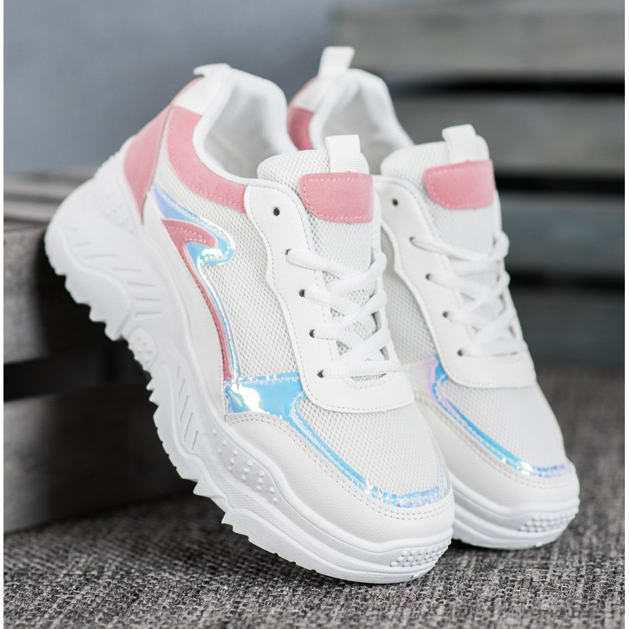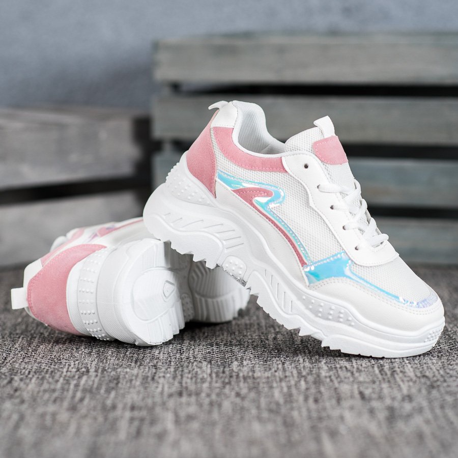 Découvrez des baskets blanches uniques de SHELOVET qui correspondent parfaitement aux dernières tendances de la mode. Ces chaussures extrêmement stylées avec des inserts holographiques sont un incontournable pour toute femme à la mode ! Leur design unique en fait un complément parfait aux styles quotidiens et plus élégants.