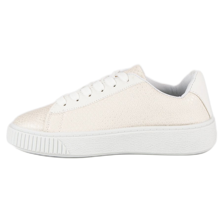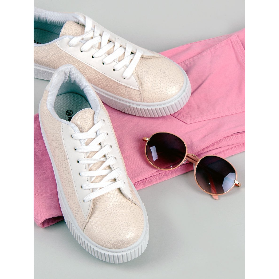 Les chaussures ont une plateforme de 3 centimètres, ce qui ajoute non seulement de la hauteur mais aussi de la stabilité. La semelle en caoutchouc avec bande de roulement garantit une bonne adhérence, ce qui en fait un modèle idéal pour faire du shopping ou se promener au quotidien. Des lacets blancs et un bout rond classique soulignent le caractère sportif de ces baskets.