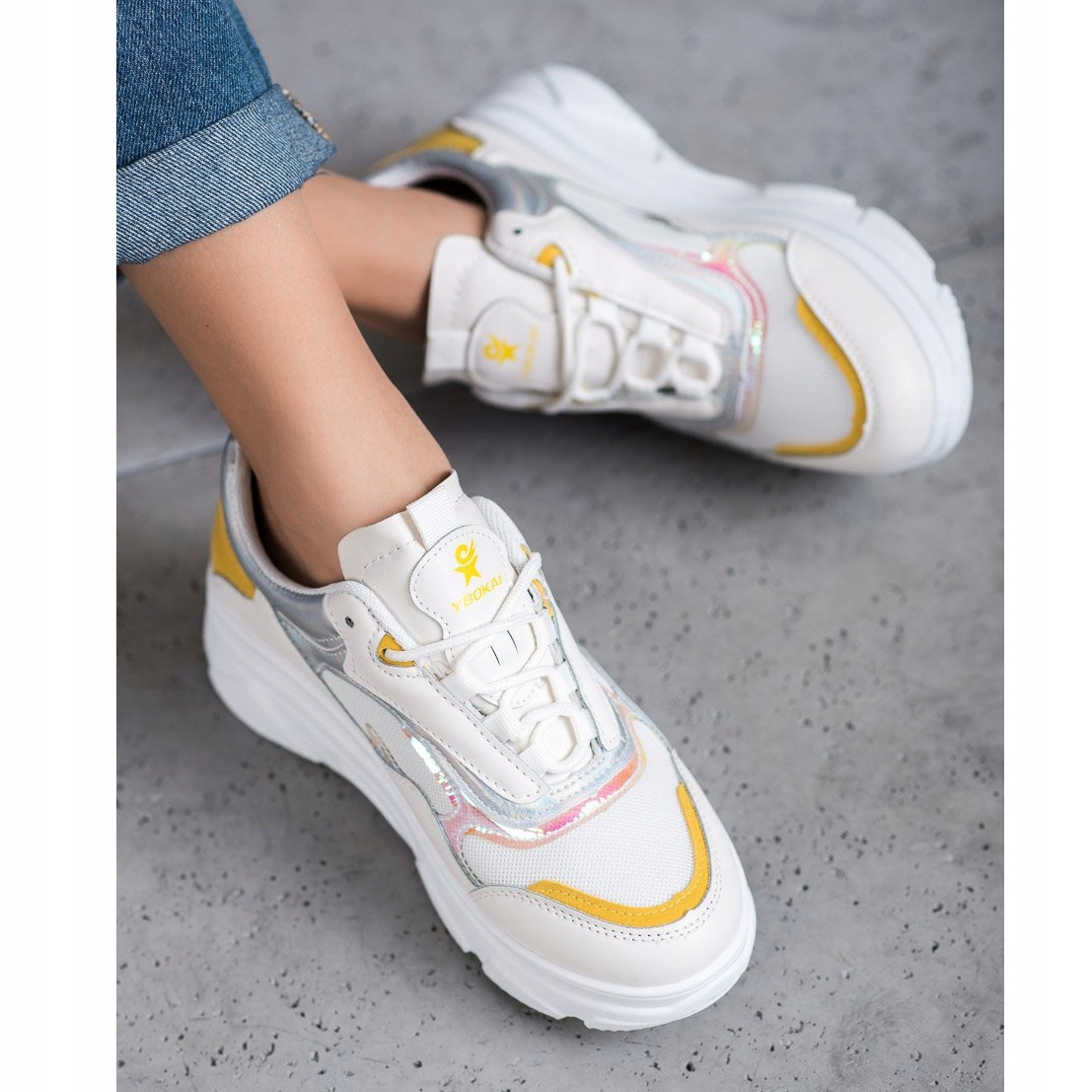 Détails: SHELOVET Baskets blanches à la mode jaune