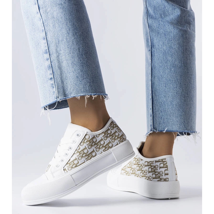 Les baskets blanches avec un motif beige sont une option idéale pour les personnes recherchant une combinaison de confort et de design élégant. Ce sont des chaussures qui s'intègrent parfaitement au style urbain et décontracté, tout en étant un complément parfait au style printanier et estival. Grâce à la tige basse classique qui révèle la cheville, ces baskets ajouteront de la légèreté à n'importe quelle tenue, soulignant le style individuel de leur propriétaire.