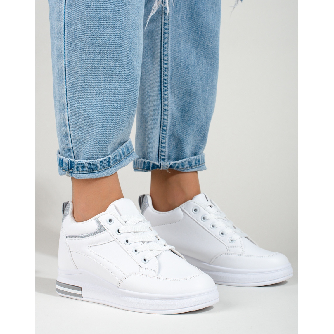 SHELOVET Baskets blanches à semelle compensée cachée de Shelovet