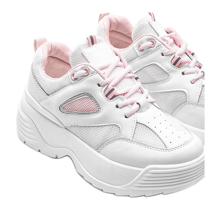 Les baskets blanches à semelle épaisse de Jaida sont un succès absolu de la prochaine saison estivale, qui attirera certainement l'attention de toutes les fashionistas. Ces chaussures élégantes se caractérisent par une semelle haute en forme de coin, qui ajoute non seulement une silhouette attrayante, mais assure également un confort de port tout au long de la journée. L'insert holographique leur donne un éclat unique, ce qui permet aux baskets de se démarquer des autres modèles.