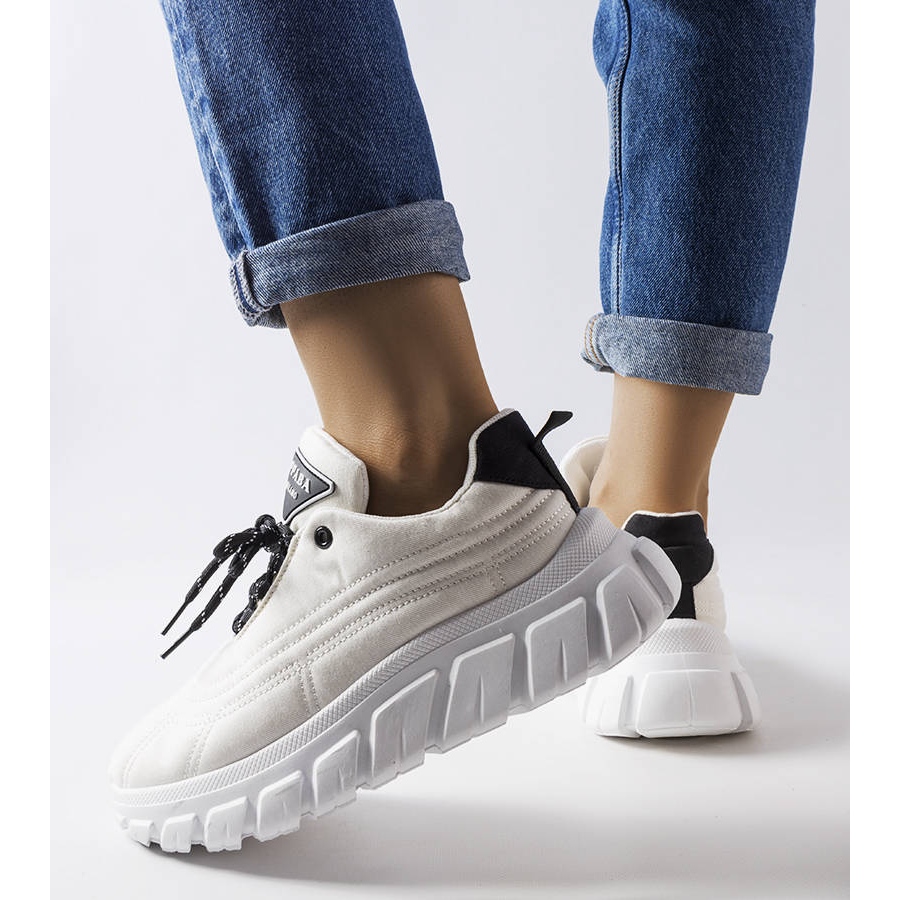 Les chaussures sont très confortables, fabriquées dans un tissu de haute qualité. La semelle est en caoutchouc, ce qui garantit une durabilité adéquate et une utilisation à long terme. Les baskets blanches sont à lacets, ce qui permet d'ajuster la chaussure aux besoins individuels de l'utilisateur.
