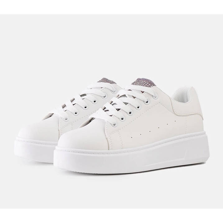 Cependant, le véritable cœur de ces chaussures réside dans leur décoration impressionnante. Les strass se marient parfaitement avec la surface blanche du cuir écologique, donnant aux baskets un motif unique qui vous permettra de vous démarquer de la foule. C'est l'accent parfait pour les femmes qui expérimentent avec audace la mode et n'ont pas peur de montrer leur caractère à travers des accessoires originaux.