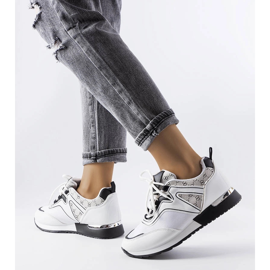 Les baskets blanches présentées sont une proposition parfaite pour les femmes qui apprécient le confort et les accessoires élégants. Les chaussures sont fabriquées en cuir écologique de haute qualité, ce qui garantit leur durabilité et leur résistance à un usage intensif. Le dessus des chaussures est décoré d'éléments noirs, ce qui ajoute du caractère et permet de les assortir facilement à de nombreux styles.