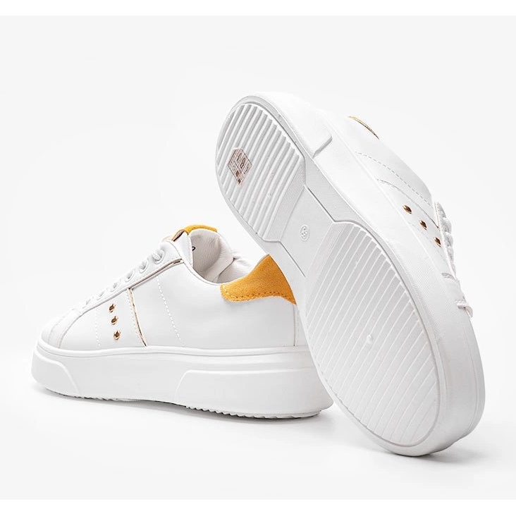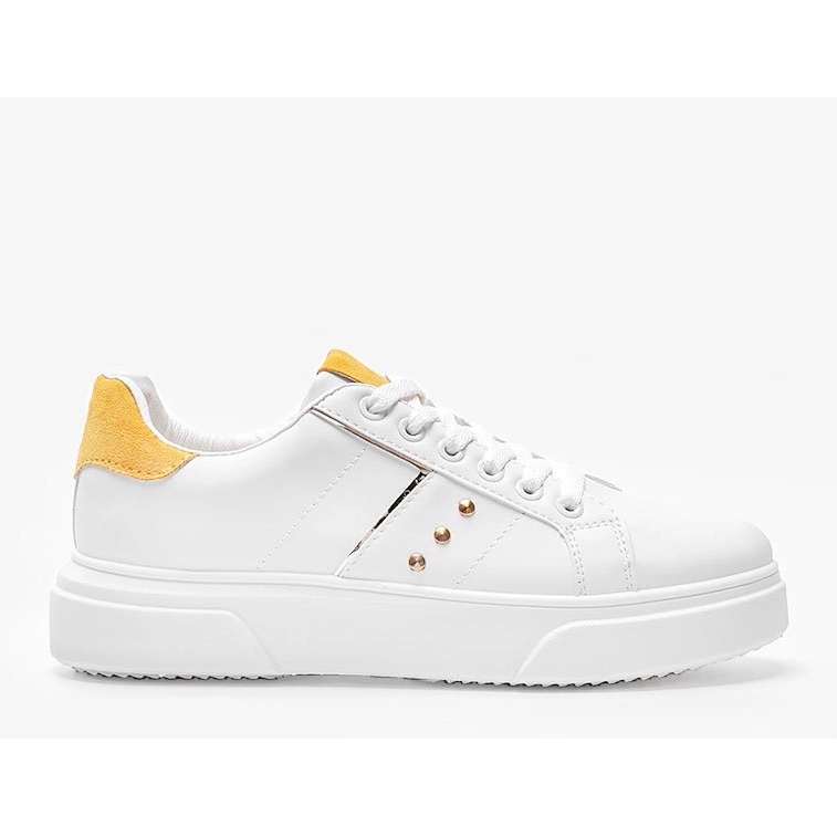 Détails: Baskets blanches avec empiècement en éco-suède Ellen jaune
