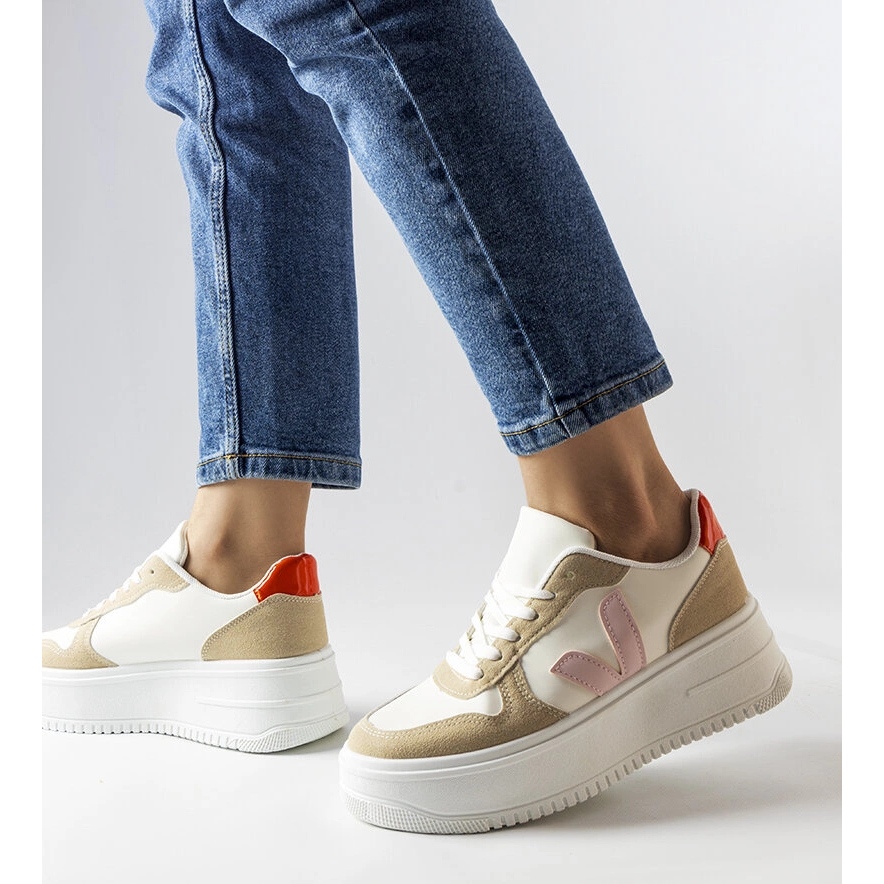Détails: Baskets blanches avec empiècement Plouffe rose