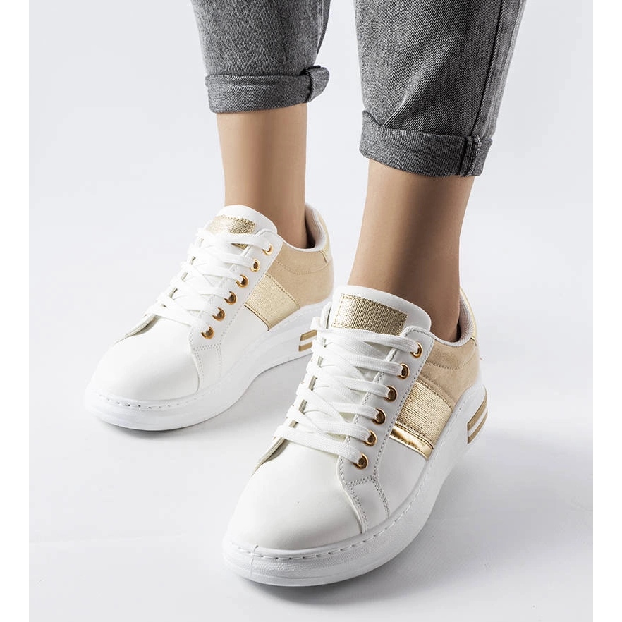 Les baskets blanches avec des empiècements beiges sont un choix à la mode pour toutes les femmes. Les chaussures appartiennent à la catégorie des chaussures de sport pour femmes.