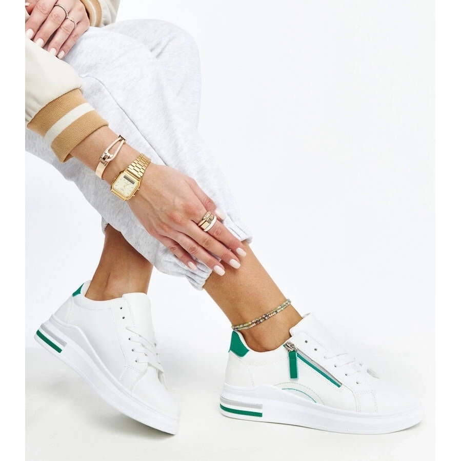 Détails: D/GMR Baskets blanches avec empiècements verts Anaunia