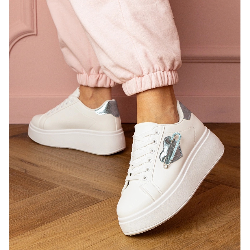 Détails: Baskets blanches avec un cœur bleu et une épingle de zircon