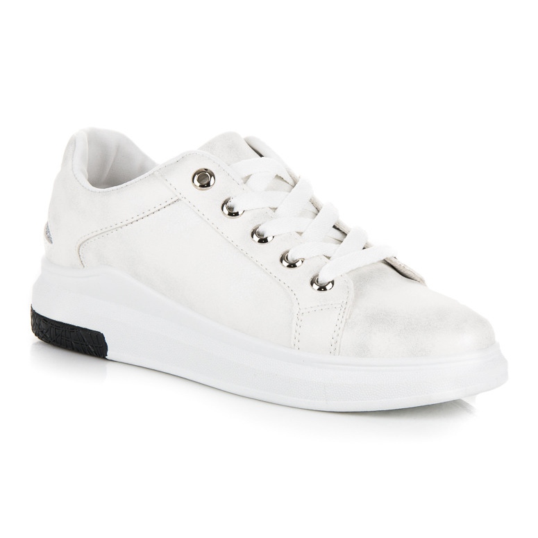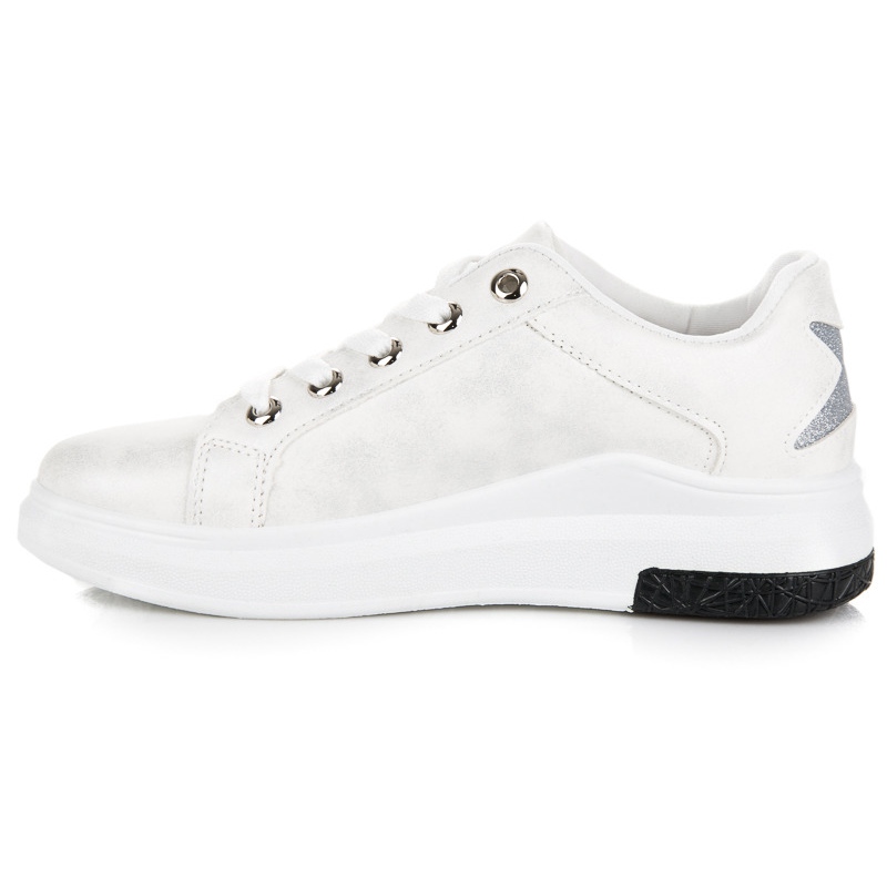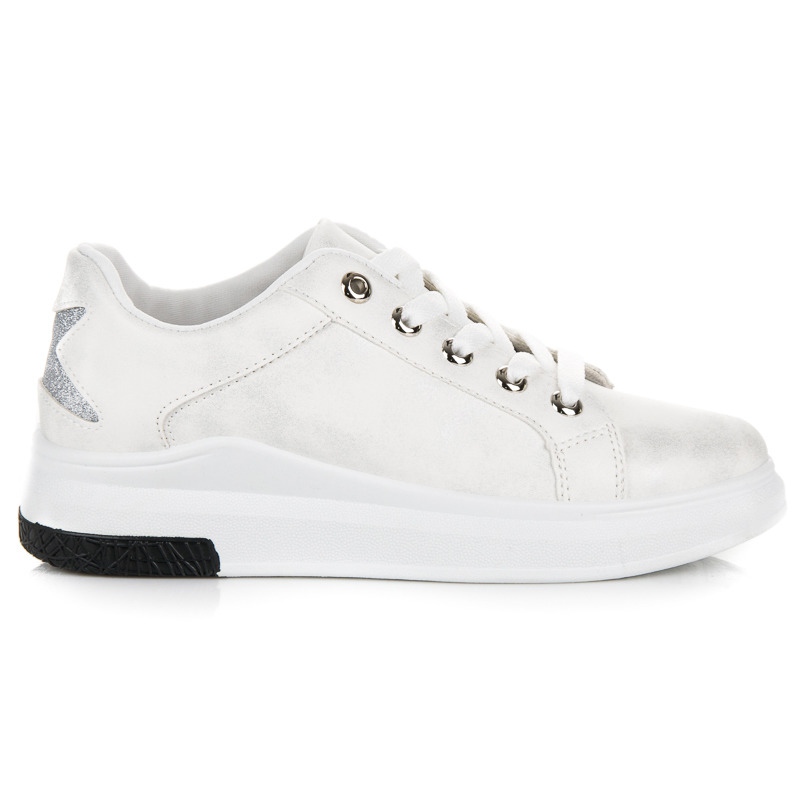 Les baskets blanches avec une étoile sont un choix parfait pour les femmes qui souhaitent allier style sportif et un peu d'originalité. Le design classique dans une élégante couleur blanche a été enrichi d'une application étoile argentée, qui leur donne du caractère et les distingue des autres modèles. Fabriquées en cuir écologique de haute qualité, ces baskets suivent la tendance de l'élégance sportive, ce qui en fait le complément parfait à de nombreux styles de tous les jours.