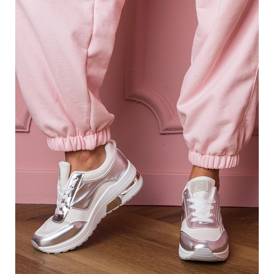 Nous présentons des baskets blanches avec des zircons et un insert métallique - la combinaison parfaite de style sportif et d'accents de mode. Ces chaussures de sport pour femmes sont un excellent choix pour les femmes qui apprécient à la fois le confort et l'originalité.