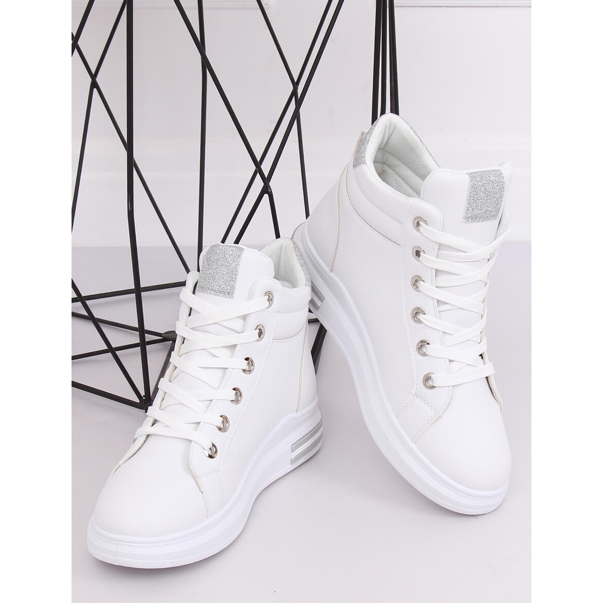 Les baskets montantes blanches CB-19078 WHITE/SILVER sont un choix parfait pour toute femme à la mode qui veut se démarquer de la foule. Ces baskets à lacets et semelle haute allient confort et style, ce qui en fait le compagnon idéal pour un style quotidien.