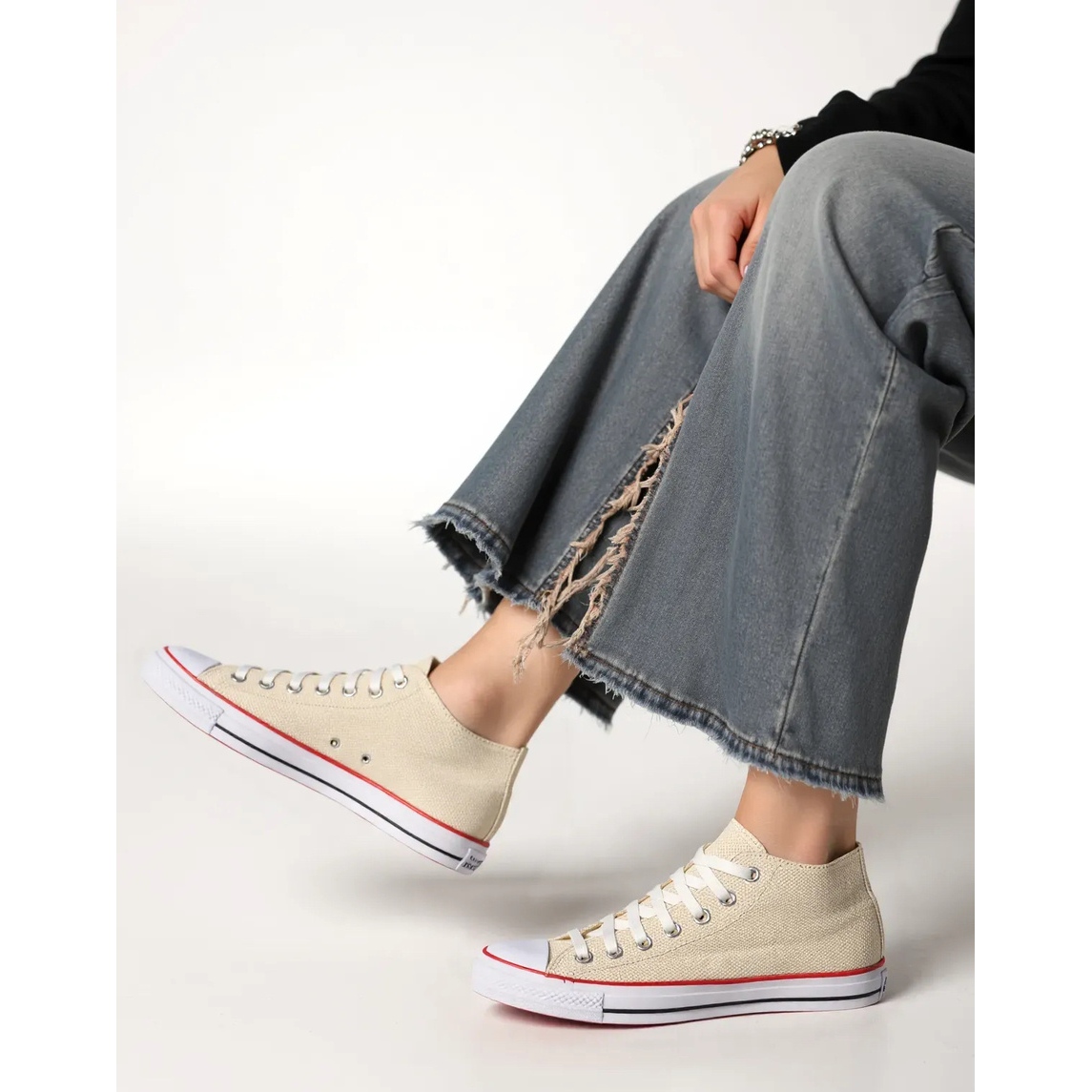 Les baskets blanches des femmes en blanc sont la combinaison parfaite de classiques et de modernité. Le modèle se distingue par un brillant élégant sur la tige et une ligne rouge contrastée sur la semelle, ce qui lui donne un style unique. Confortable et léger, parfait pour les stylisations de tous les jours.