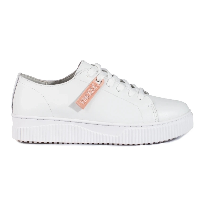 Lorsque vous achetez des chaussures Vinceza, vous les recevez dans l'emballage d'origine du fabricant, ce qui en fait également une excellente idée cadeau. Le blanc classique et l'absence de motif accrocheur font de ces chaussures un complément parfait à presque toutes les tenues - des jeans aux leggings de sport en passant par les robes d'été aérées.