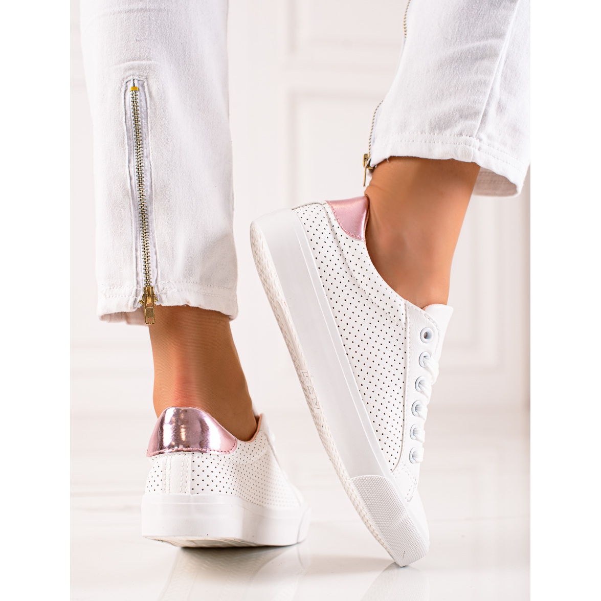 Ces baskets sont fabriquées en cuir écologique de haute qualité, ce qui les rend non seulement respectueuses de l'environnement, mais aussi extrêmement faciles à entretenir. Le motif ajouré leur confère légèreté et caractère unique, et la couleur blanche classique les rend parfaitement adaptés à tous les styles, du look sportif aux tenues décontractées.