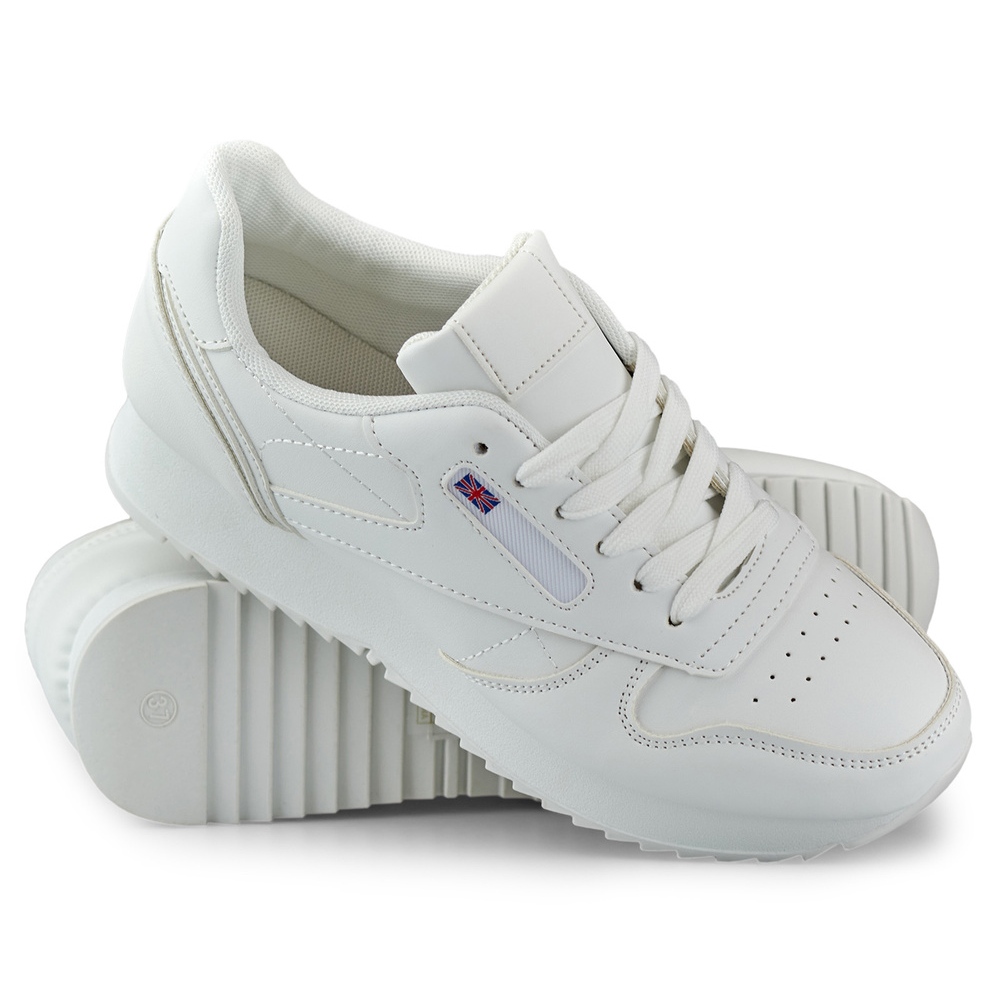 Le produit que je décris sont des baskets blanches pour femmes au look classique. Il s'agit de chaussures de sport fabriquées par un fabricant marqué « Une autre marque ». Ils sont fabriqués en cuir écologique, ce qui ajoute de l'élégance, mais en même temps ils sont respectueux de l'environnement. Ils disposent d'une plateforme de 3,5 cm de hauteur, ajoutant un peu de hauteur sans compromettre le confort.
