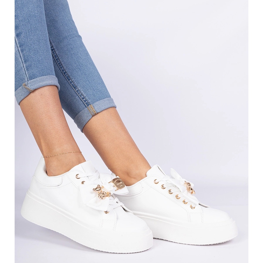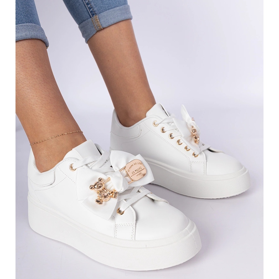 Inna marka Baskets blanches décorées d'un arc et d'un ours en peluche doré