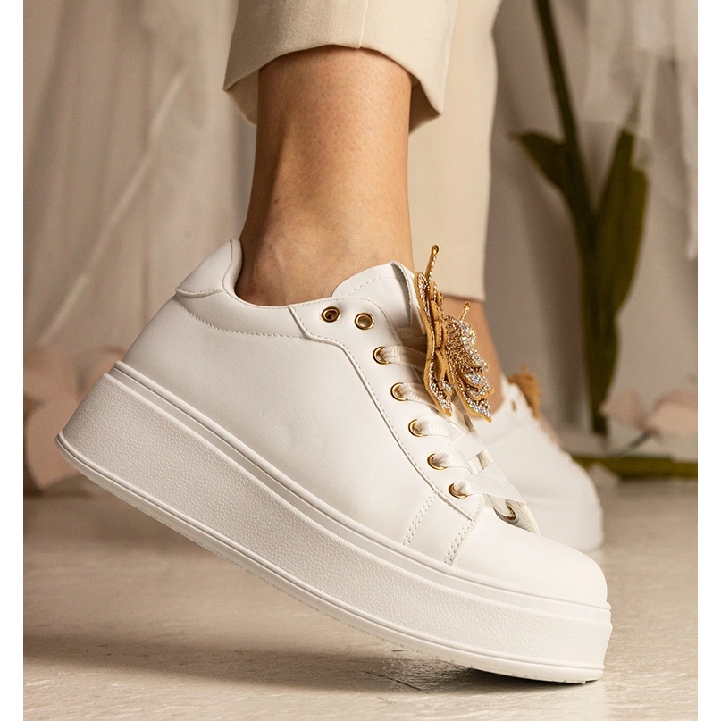 Découvrez le style unique et la commodité avec des baskets blanches décorées d'un papillon avec des zircons. Ces excellentes chaussures sont la combinaison parfaite d'une coupe sportive avec un accent à la mode, qui attirera certainement l'attention.