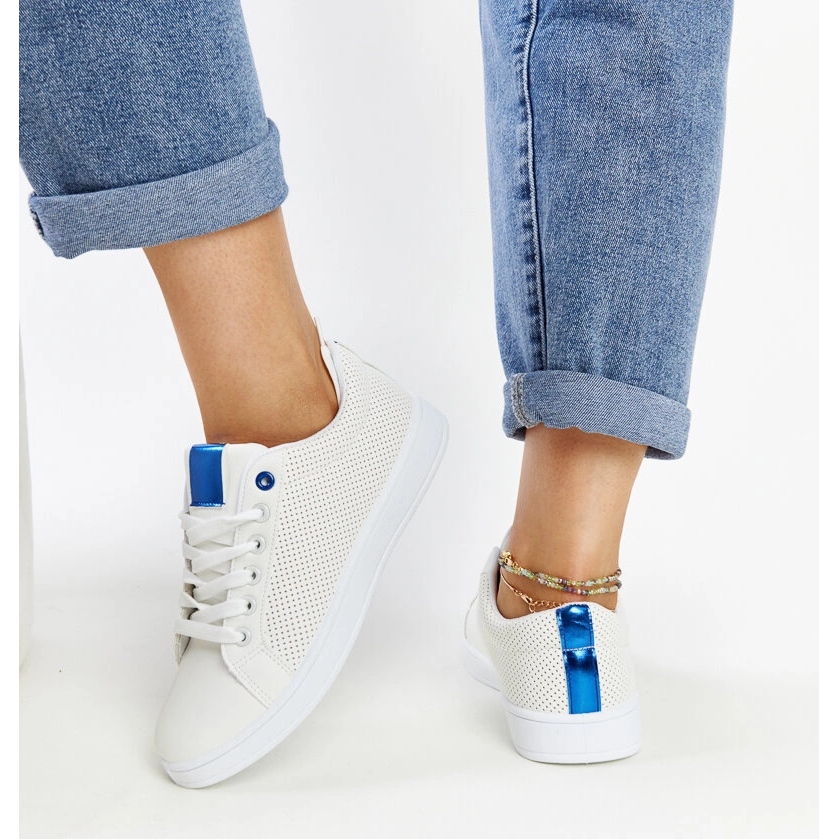 Le modèle blanc semi-collé avec des accents bleus fait partie des dernières tendances, offrant un look frais et léger qui animera toute tenue de printemps. Fabriqués en cuir écologique et en matériel textile, ils combinent l'esthétique et les soins de l'environnement. La coupe basse de la chaussure les rend adaptés à la fois pour les jeans et les robes aérées, ajoutant chaque stylisation des péchés de mode.