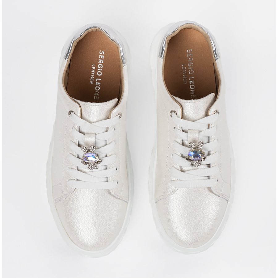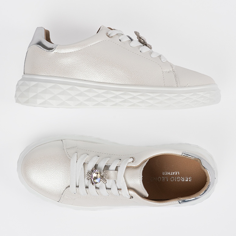 Les baskets blanches et argentées avec une épingle de Sergio Leone sont un vrai régal pour chaque amateur de mode. Ces chaussures de sport élégantes combinent le style, le confort et la plus haute qualité de fabrication, offrant des expériences extraordinaires lors de l'utilisation.