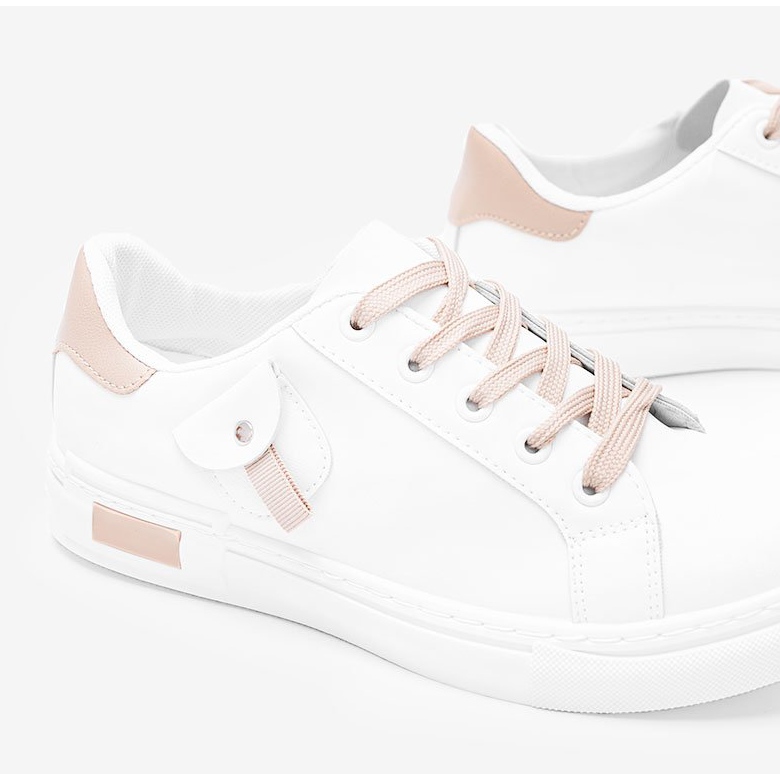 Détails: Baskets blanches et beiges avec une poche décorative par Nandina