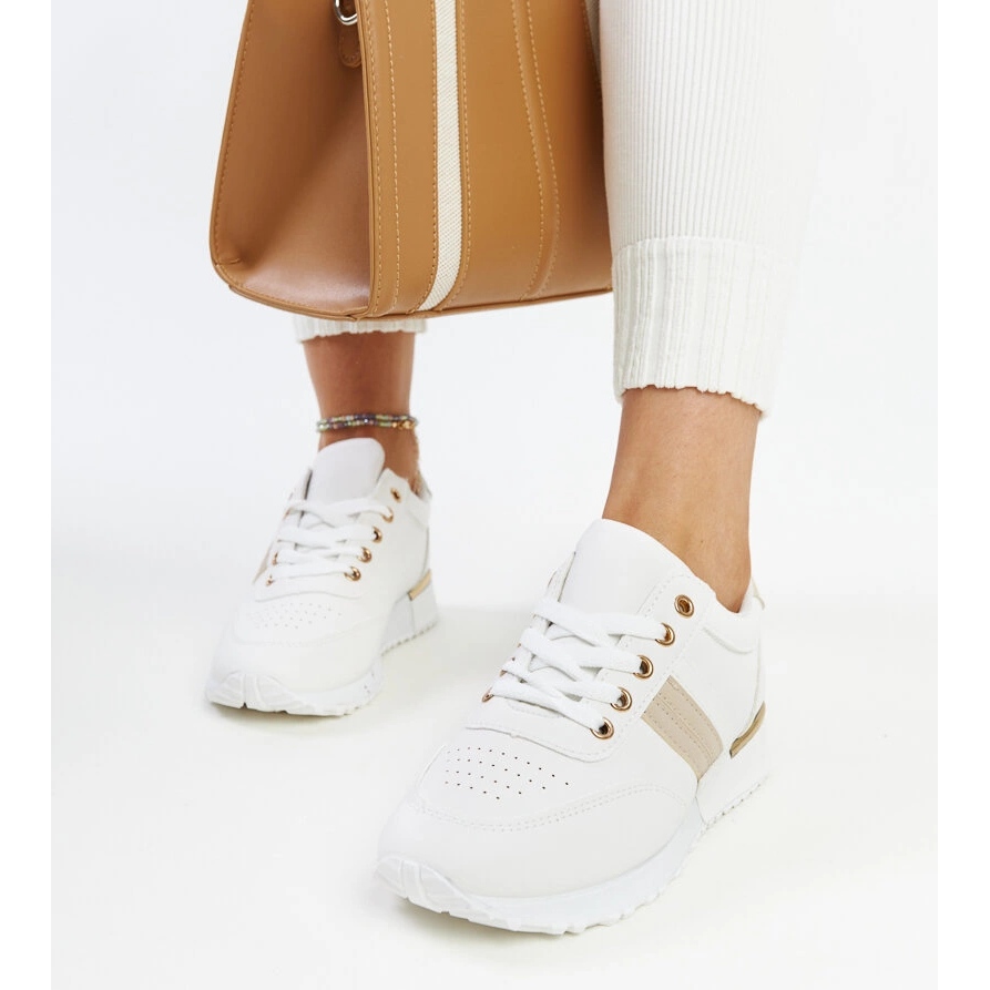 Les couleurs des chaussures - blanches avec un accent beige supplémentaire - sont non seulement universelles, mais aussi à la mode. La semelle en caoutchouc blanc maintient la cohérence des couleurs et ajoute de la légèreté. Ces baskets ne sont pas isolées, ce qui les rend parfaites pour les saisons plus chaudes.