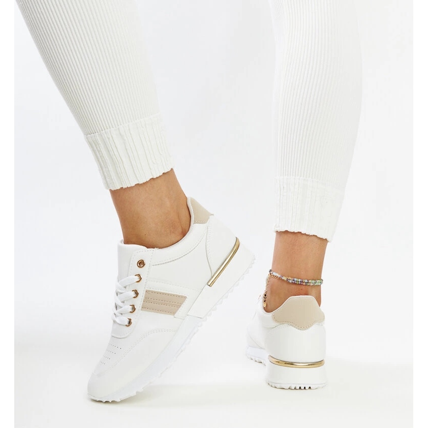 Détails: Baskets blanches et beiges sur plateforme en caoutchouc Nihad