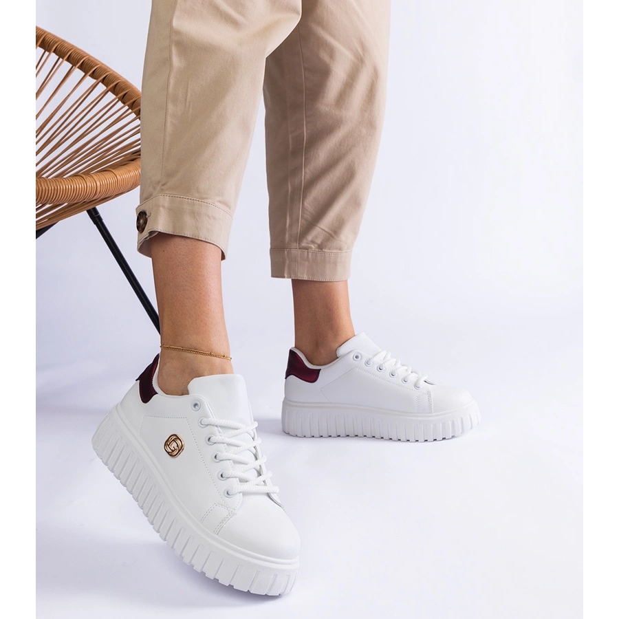 Inna marka Baskets blanches et bordeaux à semelle épaisse