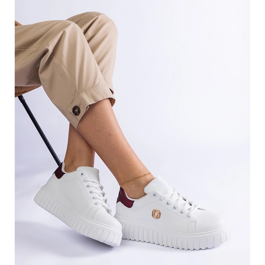 Détails: Baskets blanches et bordeaux à semelle épaisse