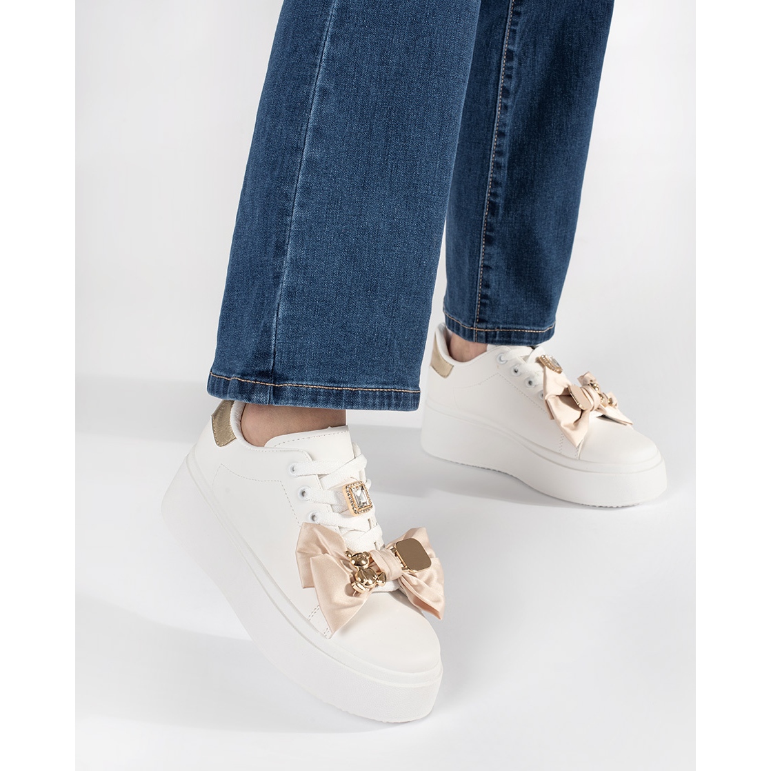 Inna marka Baskets blanches et dorées avec ajouts dorés