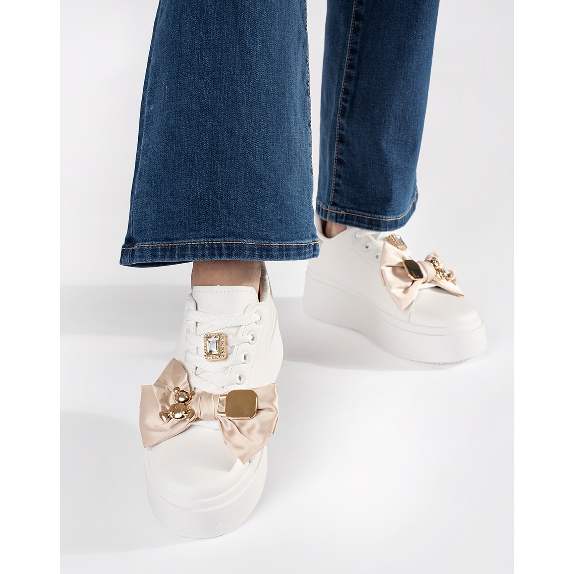 Détails: Baskets blanches et dorées avec ajouts dorés
