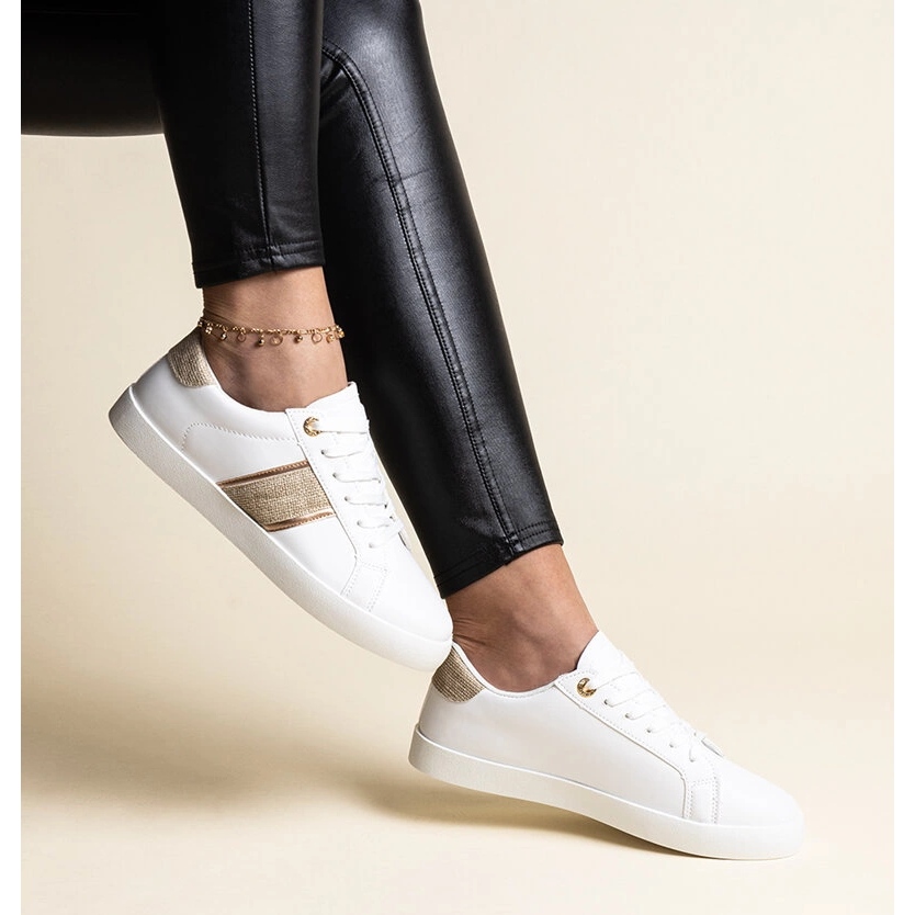 Détails: Baskets blanches et dorées avec bande décorative Grada