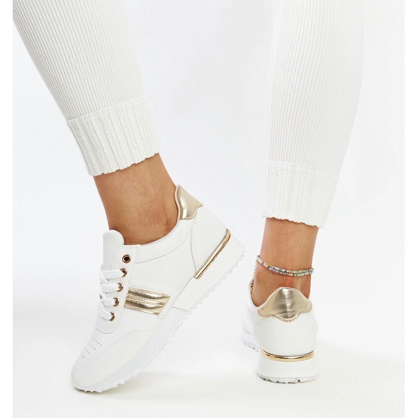 Détails: Baskets blanches et dorées sur la plateforme en caoutchouc Nihad