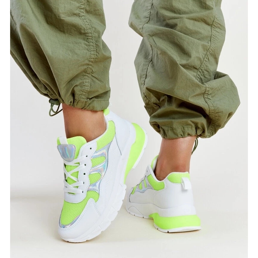 Détails: Baskets blanches et jaunes à semelle épaisse Matea