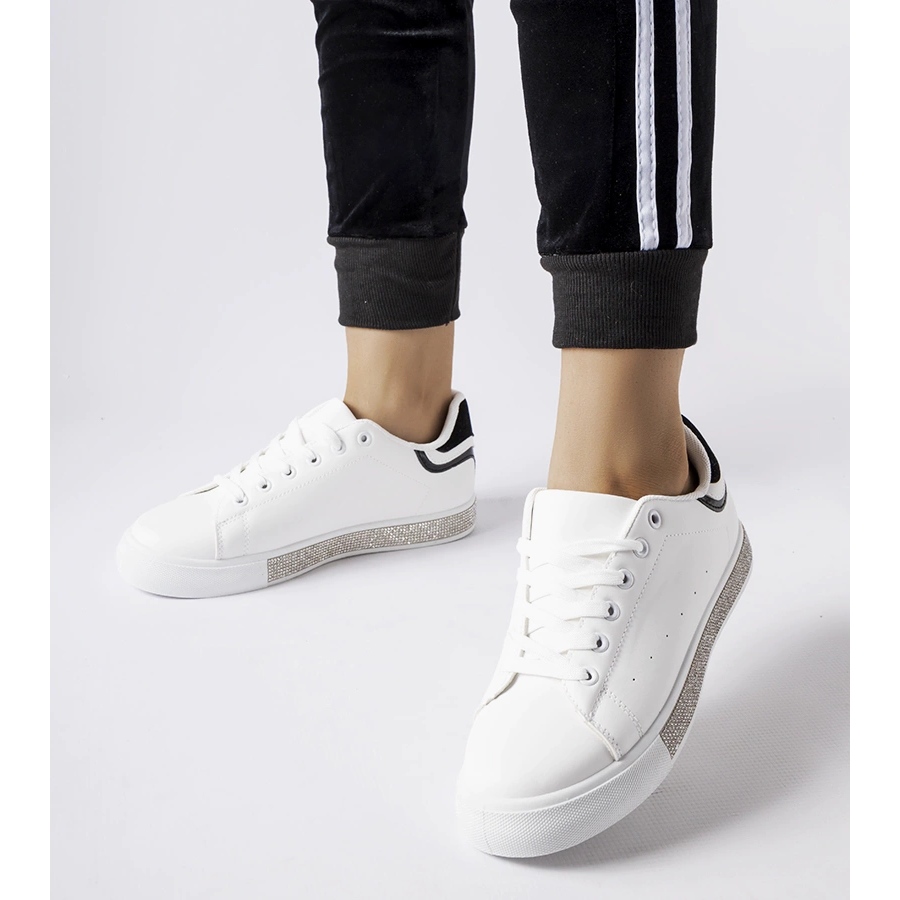 Sneakers blancs et blancs Dina avec des zircons-modernes, confortables et avec un soupçon de splendeur
