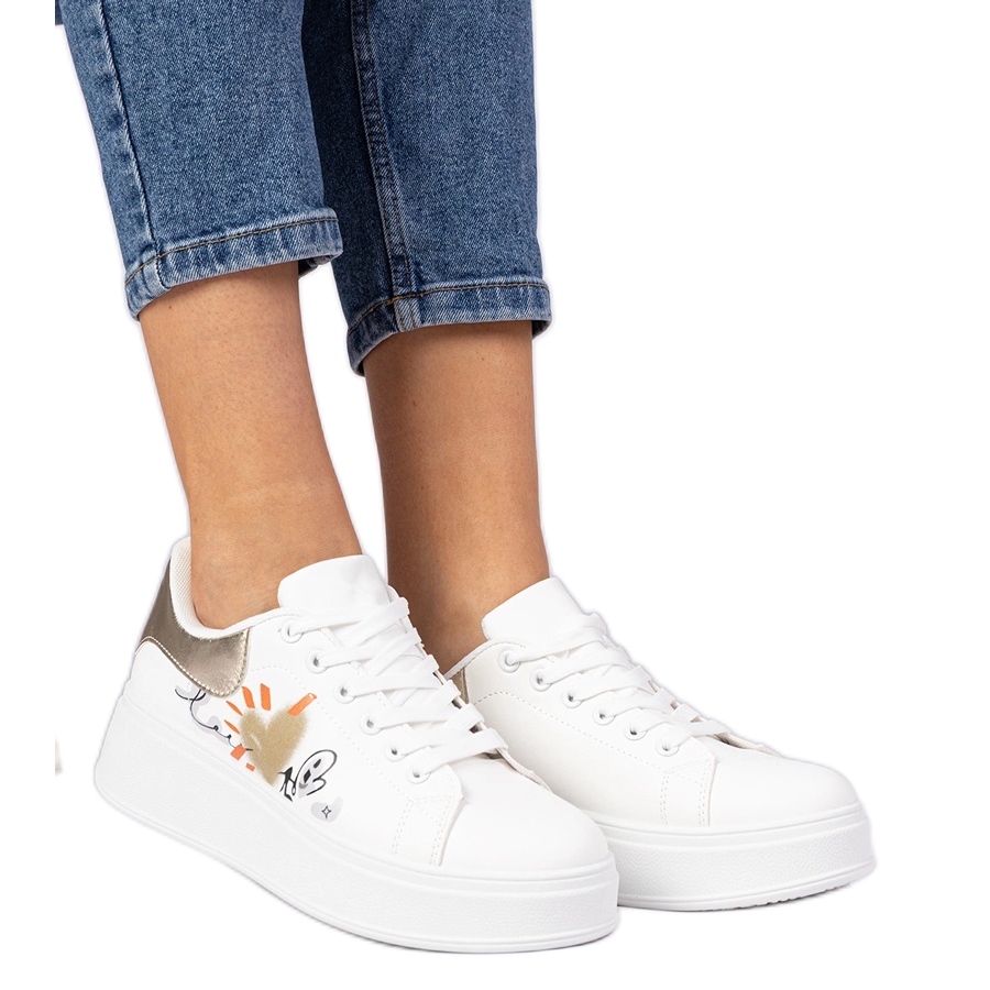Détails: Baskets blanches et or baskets sportives féminines avec imprimé