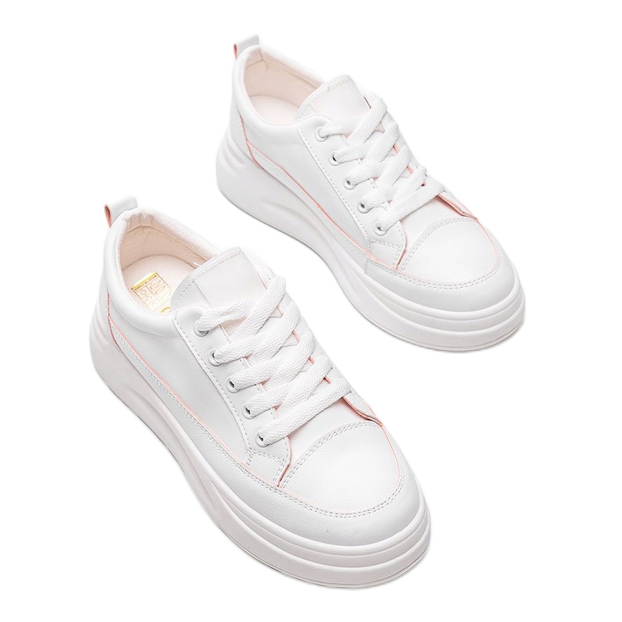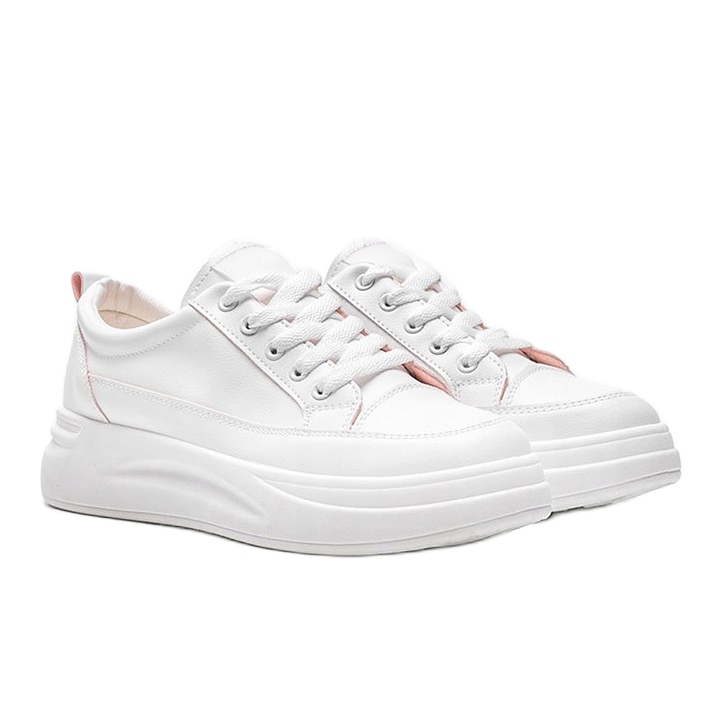 Découvrez les baskets blanches tendance et stylées à semelle épaisse de Kelsi, un incontournable cette saison ! Ces chaussures classiques, fabriquées en éco-cuir de haute qualité, compléteront parfaitement vos styles d'été en leur apportant fraîcheur et légèreté. Leur couleur blanche universelle leur permet de s'agencer à de nombreuses tenues, et de subtils accents roses leur donnent du caractère.