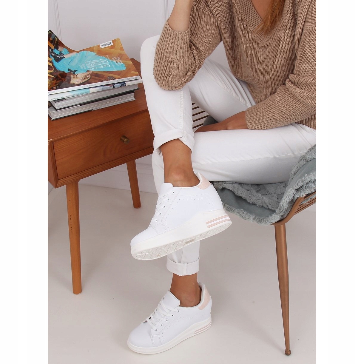 Grâce à la cale cachée de 7 cm de haut, vos jambes seront optiquement plus longues et votre silhouette paraîtra plus fine. Les baskets sont fabriquées en cuir écologique de haute qualité et l'intérieur est doublé d'un tissu doux qui assure un confort tout au long de la journée.