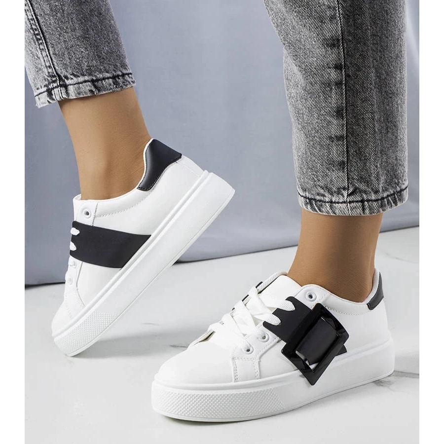 Détails: D/GMR Baskets blanches ornées d'une boucle Toni noire