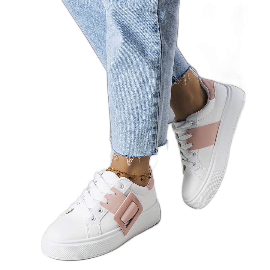 Baskets blanches avec une boucle de toni rose - Modèle LA813